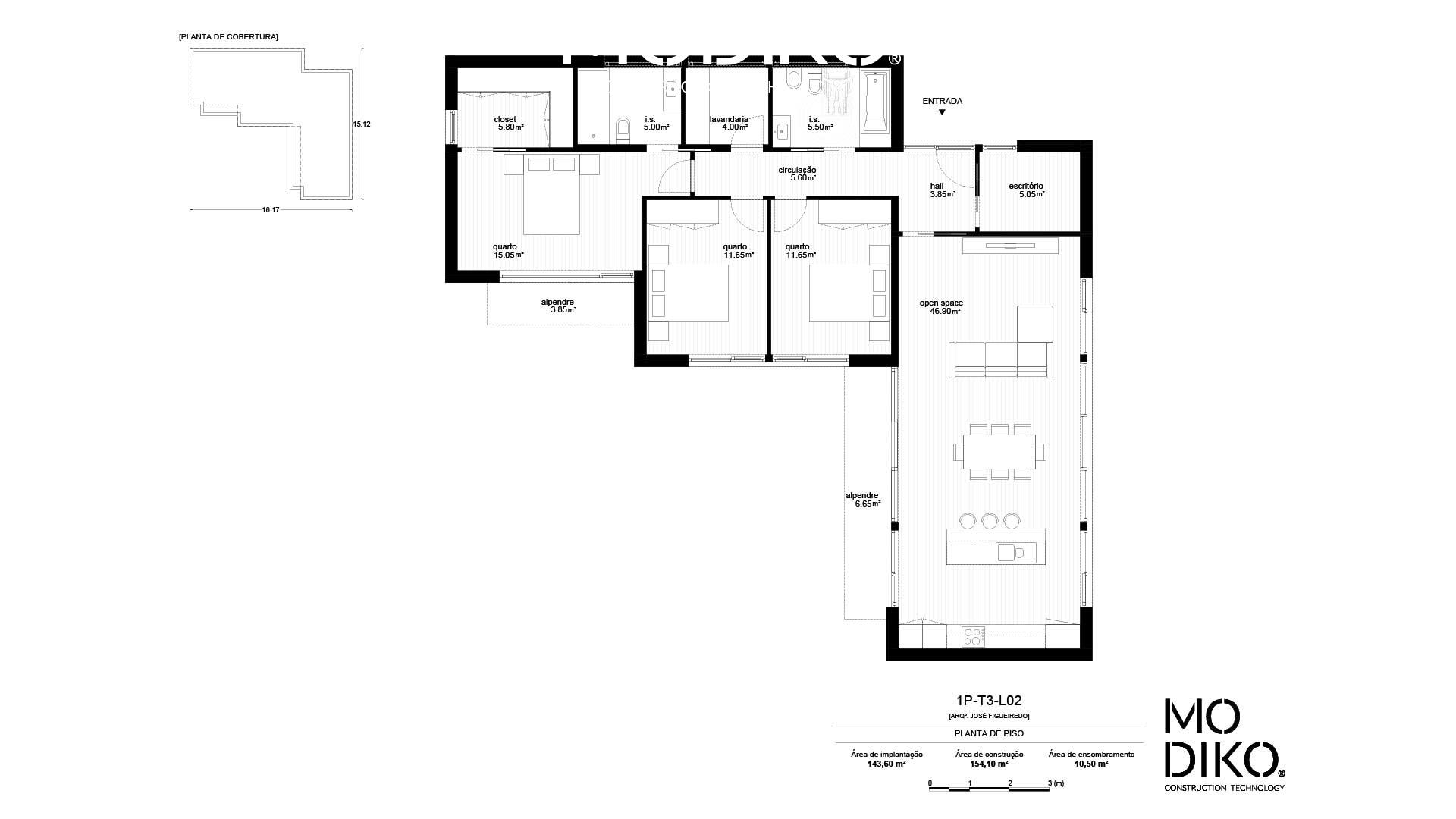 sala de estar y cocina de planta abierta; 3 suites con baño; lavadero; área técnica; aparcamiento cubierto